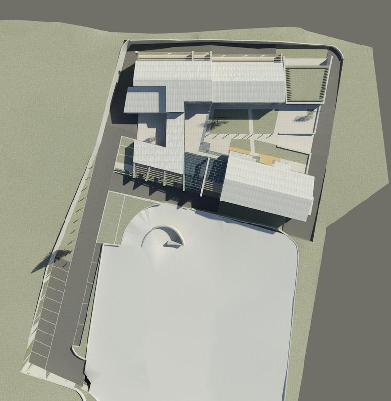 Il nostro progetto ha proposto tre corpi di fabbrica a pianta rettangolare adagiati sul declivio secondo l'asse Est-Ovest, racchiudono nella tipica forma a ventaglio la piazza ed i locali destinati alla vita collettiva.